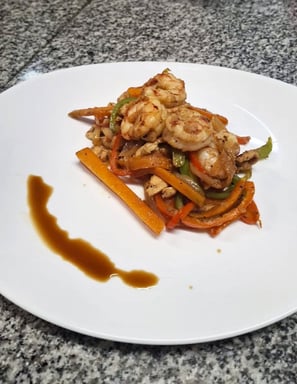 Con origen en la dinastía Sui de China, el arroz frito chino, también llamado Chao fan, es un plato de arroz que normalmente se mezcla con trozos de verduras, huevos y, a veces, carne. Al llevar pollo y camarones se lo llama mixto.