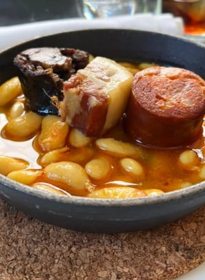 Las fabas se dejan remojando la noche previa a su elaboración y el compango contiene embutidos como el chorizo colorado, la morcilla y el cerdo.